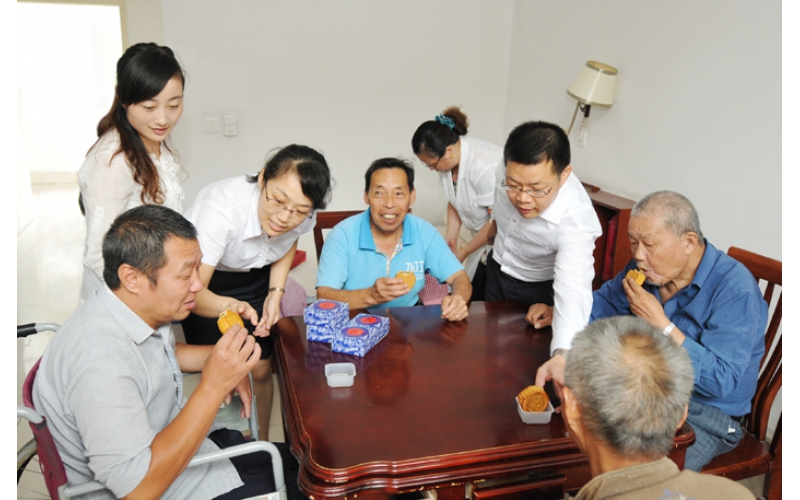2014年9月5日,在中秋節來臨之際,安惠公司黨委副書記金敏林、工會主席李士強和安惠志愿者一行來到南通開發區敬老院看望老人,為他們送去節日的問候。