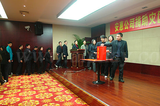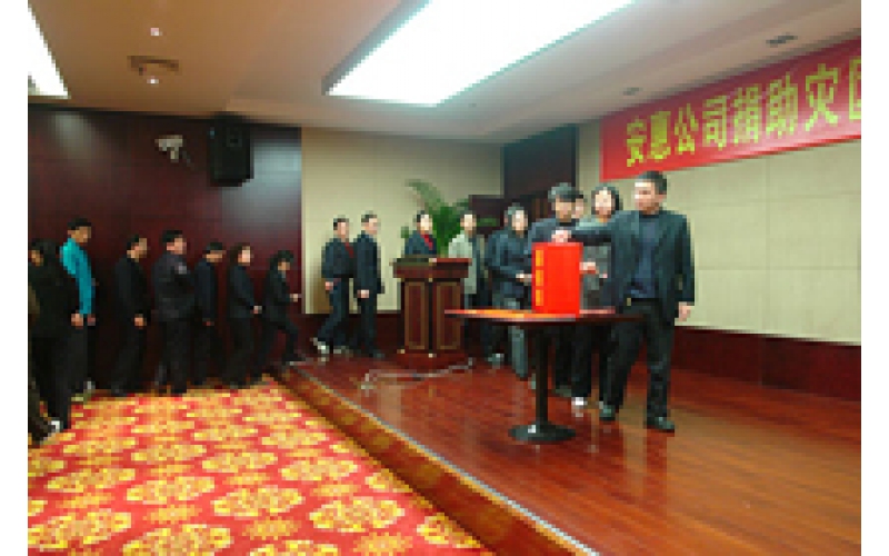 2008年5月12日,安惠公司全體員工和來自全國各地的安惠經銷商踴躍為災區人民捐款
