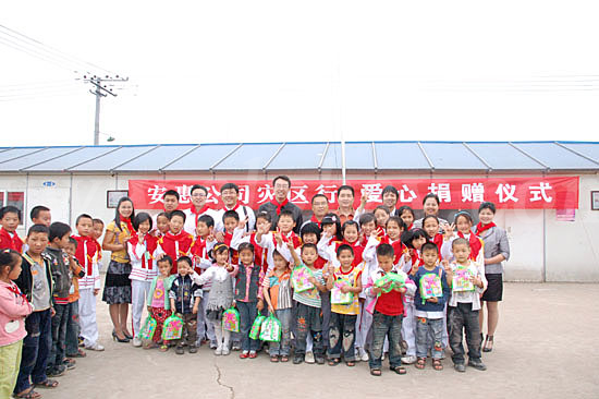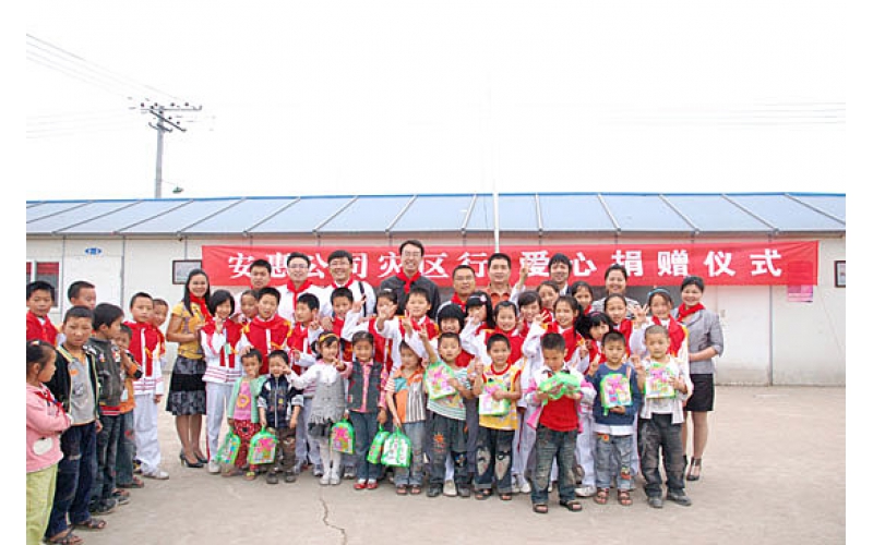 2009年5月14日,安惠公司為德陽市綿竹拱星小學的孩子們送去“愛心包裹”