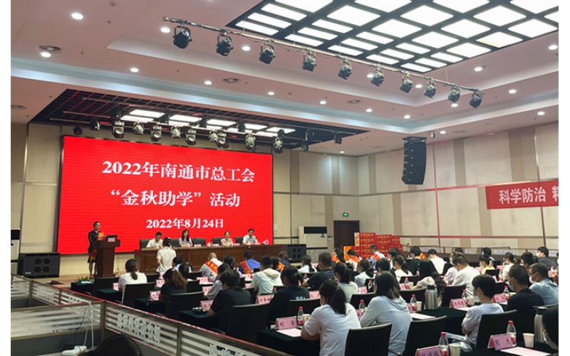 2022年8月24日下午,南通市總工會舉行2022年“工會在身邊·助圓學子夢”金秋助學活動,為困難家庭學生代表發放金秋助學金,真情關心關愛困難家庭子女,助力渴望求學的莘莘學子成才夢想。