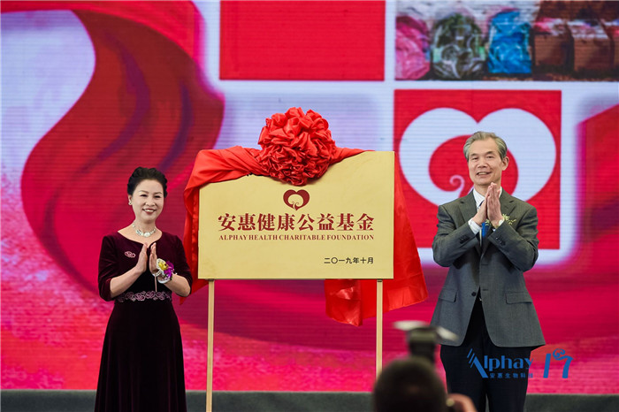 2019年10月26日,2019安惠公司優秀經銷商表彰盛典在南通體育會展中心開啟。活動中,安惠公司向南通市慈善總會注入200萬元成立安惠健康公益基金,旨在幫助重疾、重困家庭得到更好的公益救助。南通市慈善總會會長王德忠和安惠公司副董事長陸漢萍一起為安惠健康公益基金揭牌。
