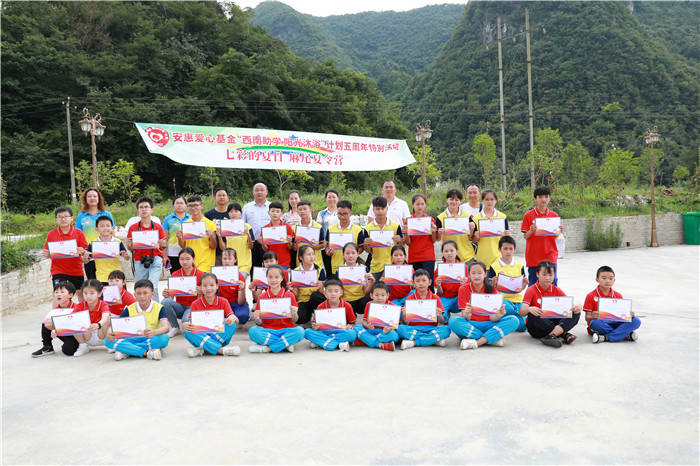 2018年是安惠愛心基金“西南助學(xué) 陽(yáng)光沐浴”計(jì)劃實(shí)施的第五年。每年安惠江海志愿者們都會(huì)來(lái)到貴州省獨(dú)山縣麻尾鎮(zhèn)開展愛心助學(xué)活動(dòng),與這里的師生們相聚。7月8-12日,志愿者們帶著6名南通的孩子們?cè)俅翁ど线@片土地,和當(dāng)?shù)貙W(xué)生互動(dòng)、交流、學(xué)習(xí),一起度過(guò)一段非常有意義的快樂時(shí)光。安惠公司副董事長(zhǎng)陸漢萍也專程來(lái)到麻尾,看望一直牽掛著的學(xué)生們,走訪受資助的學(xué)生,并實(shí)地了解空氣能熱水器的使用情況。